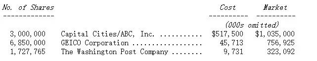 在1987年巴菲特致股东信中,巴菲特在“流通证券—永久持股”一节中说,他和芒格视这3家永久持有的企业与那些被私有化的企业无异,他还花了大量地篇幅讲述“市场先生”的概念。