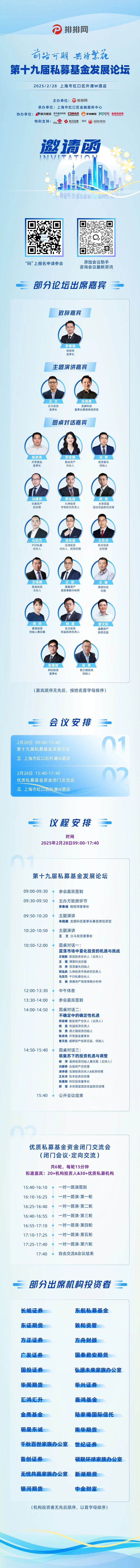 在此,我们诚挚邀请您共赴“前路可期·共待繁花”第十九届私募基金发展论坛,共同见证行业的繁荣与发展,共谋合作共赢的新篇章。2月28日,上海市虹口区外滩W酒店,期待与您相聚!席位有限,敬请扫描下方议程图中二维码,报名参会