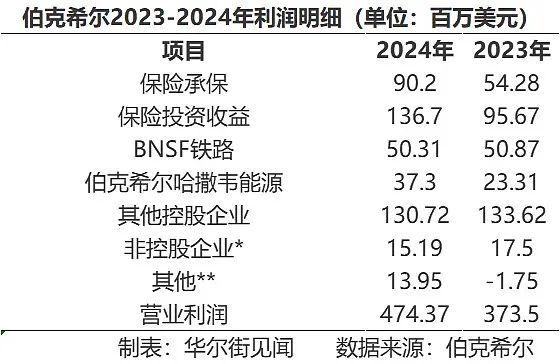 营业利润:伯克希尔2024年的营业利润为474亿美元,表现超出预期,尽管其189家运营企业中有53%报告盈利下降。