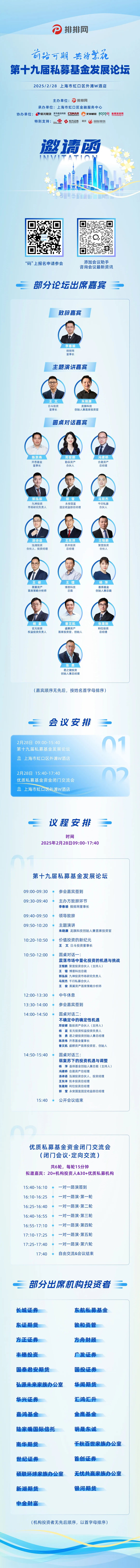 距离盛会开启仅剩2天,精彩内容即将呈现!第十九届私募基金发展论坛不仅是一场业界精英的聚会,更是洞察前沿动态、把握投资机遇的优质平台。席位有限,不容错过!我们诚挚邀请您积极参与本次论坛,请扫描下图的二维码报名,期待于2月28日在上海市虹口区外滩W酒店与您相聚,共同见证这场行业盛会的璀璨开幕。