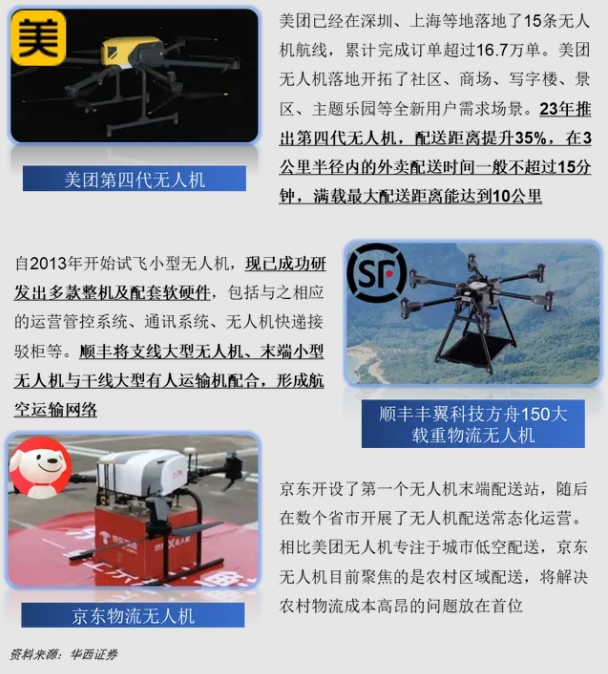 顺丰、京东物流、菜鸟、 美团、圆通、韵达等物流相关企业,已在物流领域探索无人机多年。