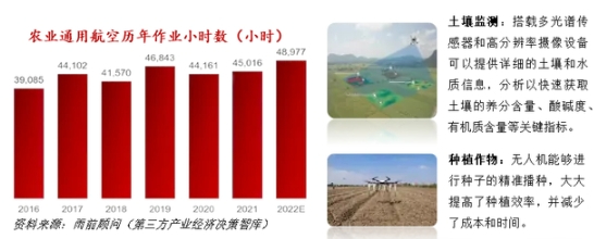 农业植保无人机应用成熟,农田机械化水平有望逐步提高。低空经济在农业植保的应用主要可包括土壤作物监测、种植作物及病虫防治。