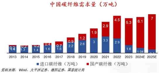 低空经济飞行器中结构内饰与装配件原材料主要是复合材料,如碳纤维、玻璃纤维等。目前行业内以碳纤维为主,据中国复合材料工业协会引用Stratview的数据,飞行汽车(主要是eVTOL)中超过90%的复合材料为碳纤维,剩余约10%为玻璃纤维。