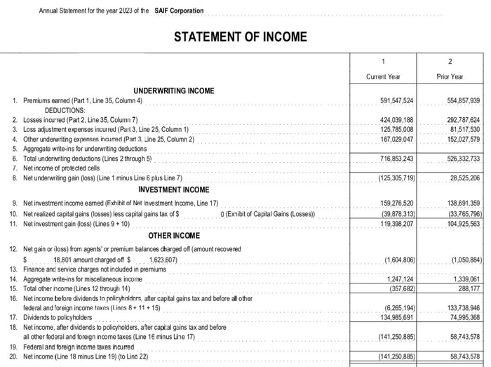 财报显示,2023年SAIF保费收入5.92亿美元,投资净收入1.59亿美元。
