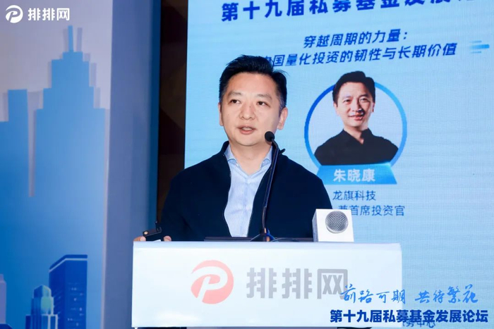 在2月28日的会议上,百亿量化私募龙旗科技的创始人兼首席投资官朱晓康出席并进行了主题为《穿越周期的力量:中国量化投资的韧性与长期价值》的演讲。