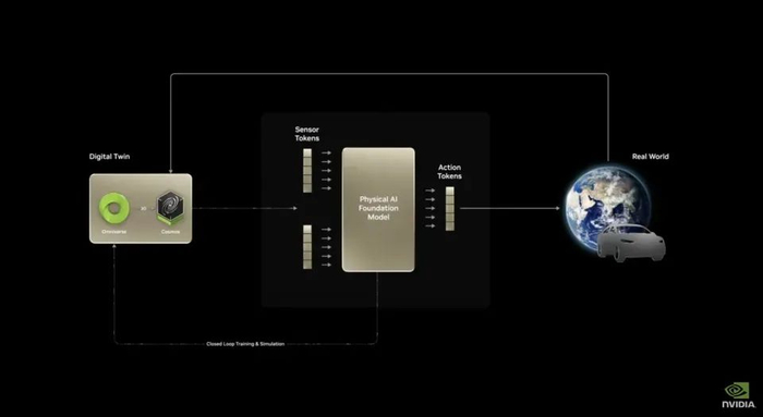 针对每个模型,靠着Omniverse这套纯虚拟系统,以及Cosmos Transfer这套真实世界图像生成系统,英伟达都能提供大量的高质量数据。这模型的第二个方面,英伟达也覆盖了。