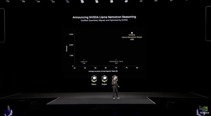 英伟达在这次GTC上用一款新模型Llama Nemotron,主打高效、准确。它是由Llama系列模型衍生而来。经过英伟达特别微调,相较于Llama本体,这款模型经过算法修剪优化,更加轻量级,仅有48B。它还具有了类似o1的推理能力。与Claude 3.7和Grok 3一样,Llama Nemotron模型内置了推理能力开关,用户可选择是否开启。这个系列分为三档:入门级的Nano、中端的Super和旗舰Ultra,每一款都针对不同规模的企业需求。