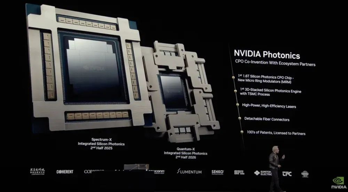上述产品统一归类到“NVIDIA Photonics”,英伟达说这是一个基于CPO合作伙伴生态共创研发的平台,例如其搭载的微环调制器(MRM)是基于台积电的光引擎优化而来,支持高功率、高能效激光调制,并且采用可拆卸光纤连接器。