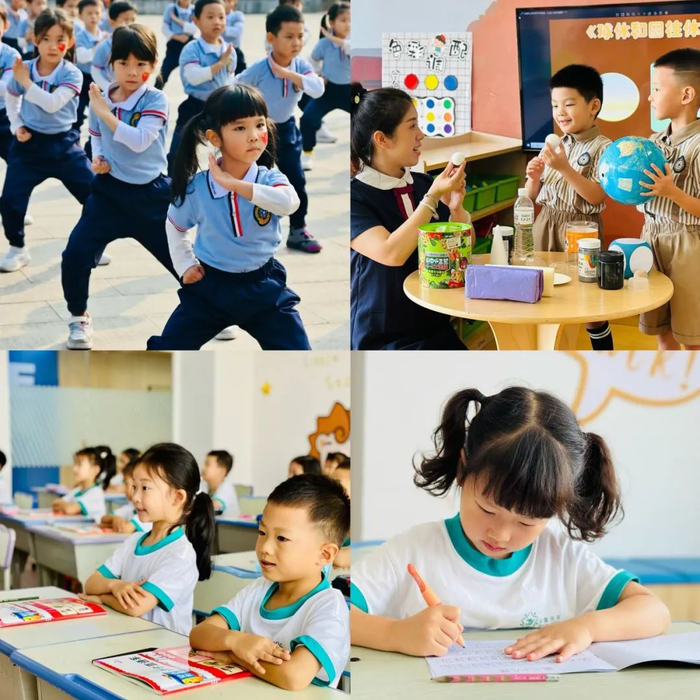 注重培养儿童的观察力、注意力、记忆力、想象力和思维能力。通过绘画、手工、拼图等活动,提高儿童的操作能力和解决问题的能力。在语言教学中,提高儿童的听力理解能力,学会倾听。通过具体的操作活动,让儿童体验数学在生活中的应用。开发艺术潜能,让儿童体验绘画、手工,歌唱,舞蹈等艺术活动,培养他们的审美能力和创造力。通过跑、跳、投掷等基本动作,提高儿童的身体协调能力和力量。同时,培养儿童的合作精神和竞争意识。
