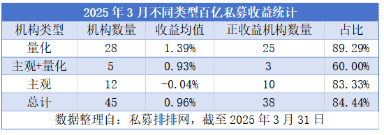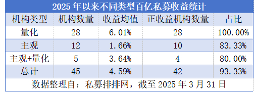 百亿私募一季度平均收益为4.59%,百亿量化完胜百亿主观