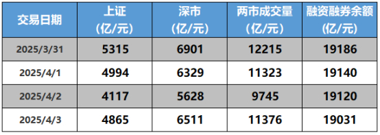 上周(3.31-4.3)市场下跌情绪明显,两市成交量下降,周日均成交量 11165亿。两融余额下降。