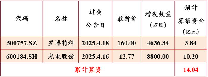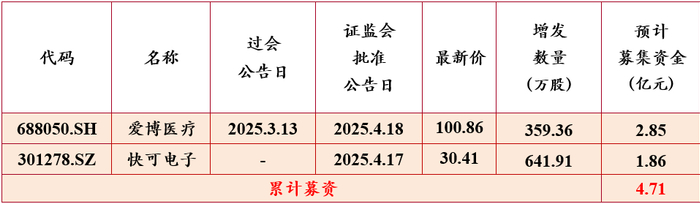 【中和关注】定增周报
