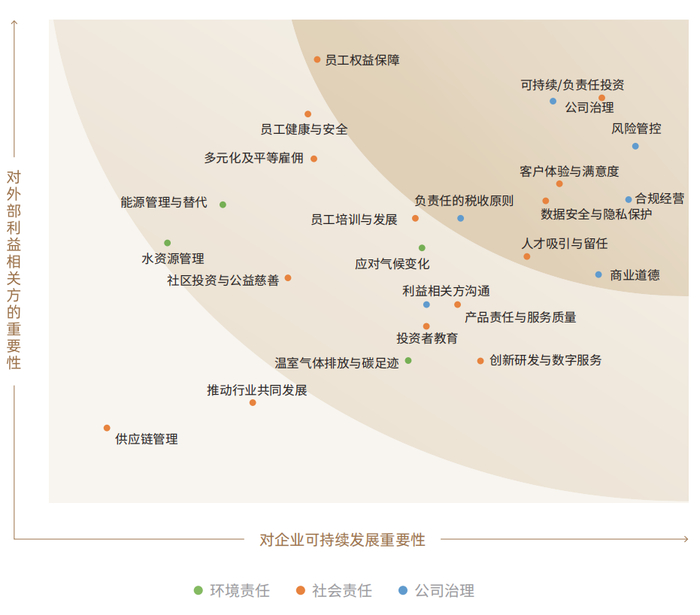 针对2024年实质性议题利益相关方调研结果,诺亚控股形成实质性议题矩阵,识别出10项具有高度实质性的议题,并将其作为本年度报告的重点披露内容: