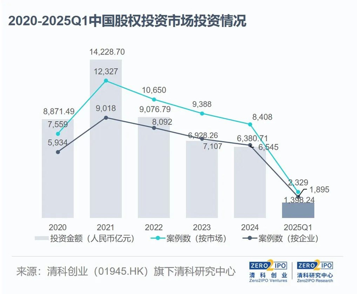 2025年第一季度股权投资总金额超1,300亿元,投资案例数同比有所回暖