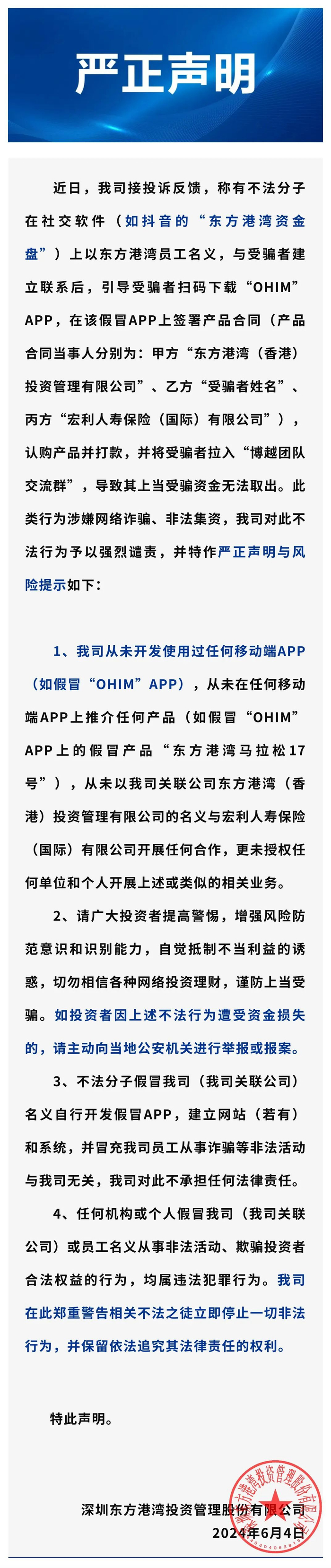 港湾声明︱关于谨防不法分子假冒东方港湾实施诈骗的严正声明