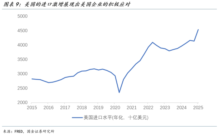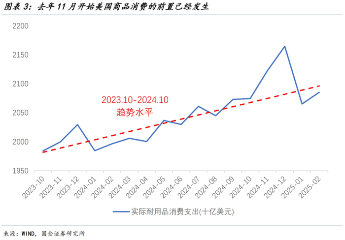 而在消费者信心指数出现向下拐点之前,美国耐用品的前置消费就已发生,说明当时的消费数据已经包含了部分关税预期。