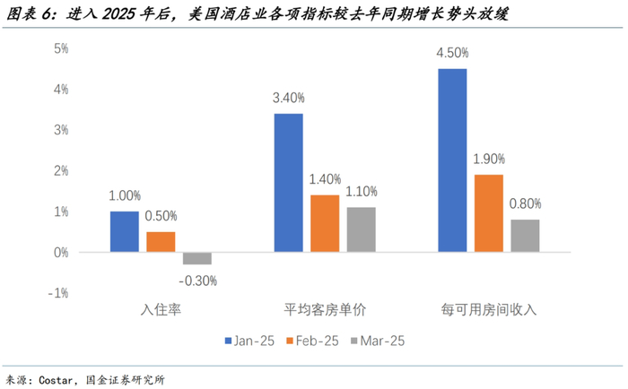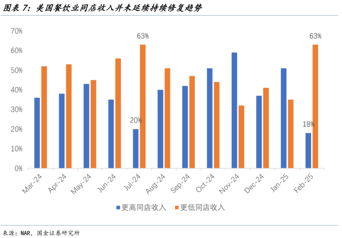 比如美国本土出行旅游等非必要消费的下降,酒店入住率持续下行且同比收缩,餐饮业同店收入指标急剧恶化等,都是服务消费走弱的具象化体现。