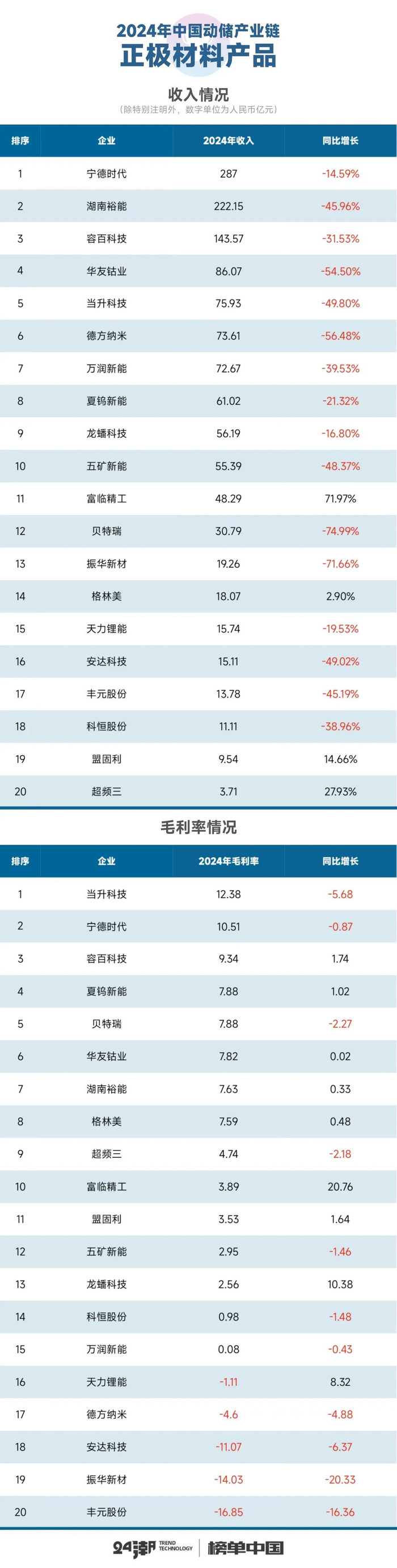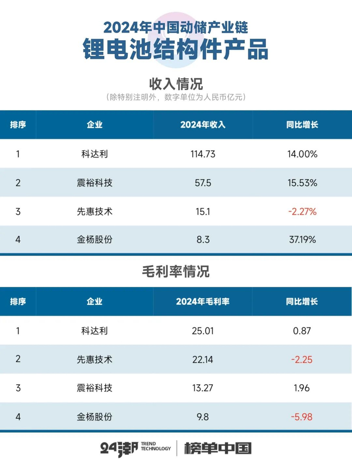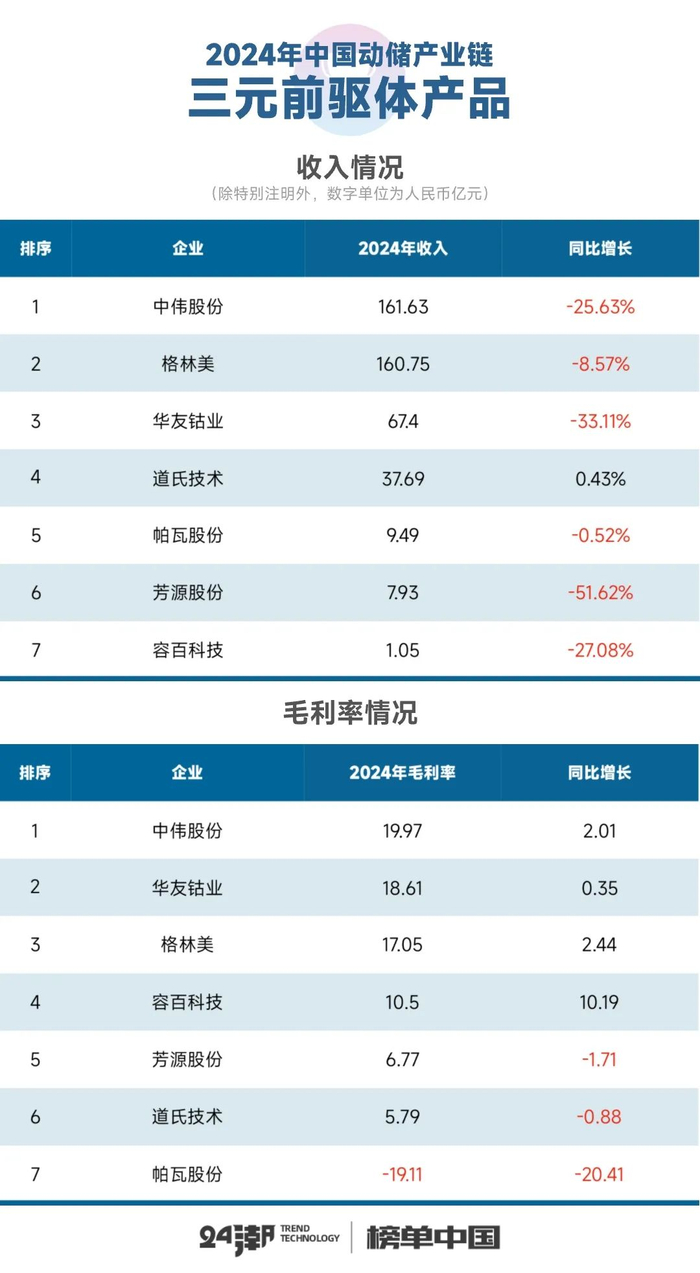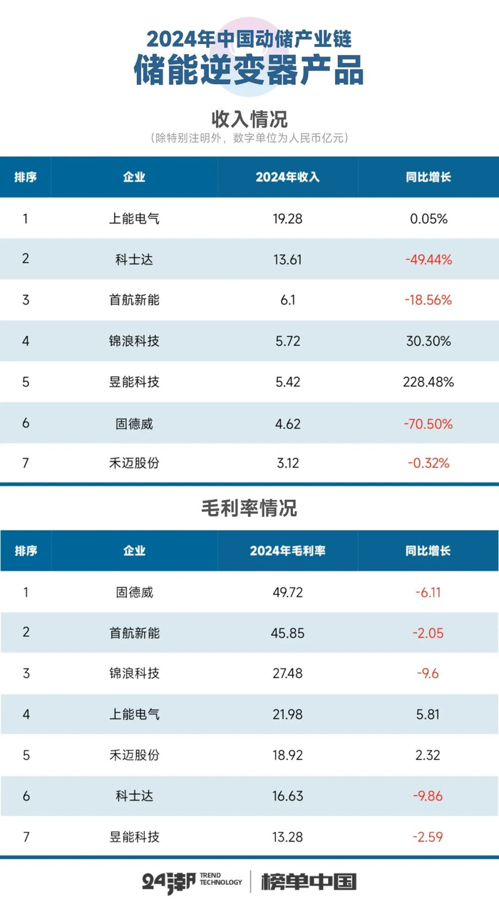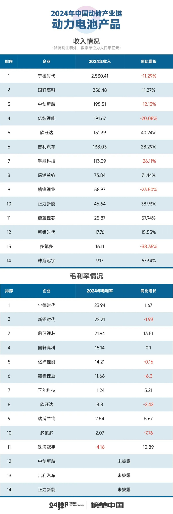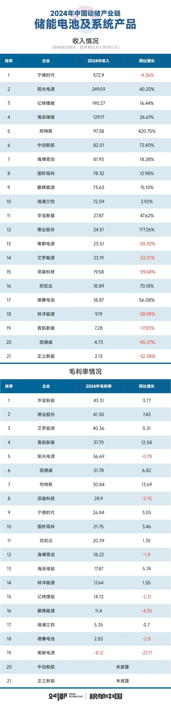 据24潮产业研究院(TTIR)统计分析100多家动储上市公司财报发现,2024财年,整个上市军团 “动储业务收入” 合计约为10445.07亿元,同比下降了12.97%;整体毛利率约为18.37%,同比下降1.97%。