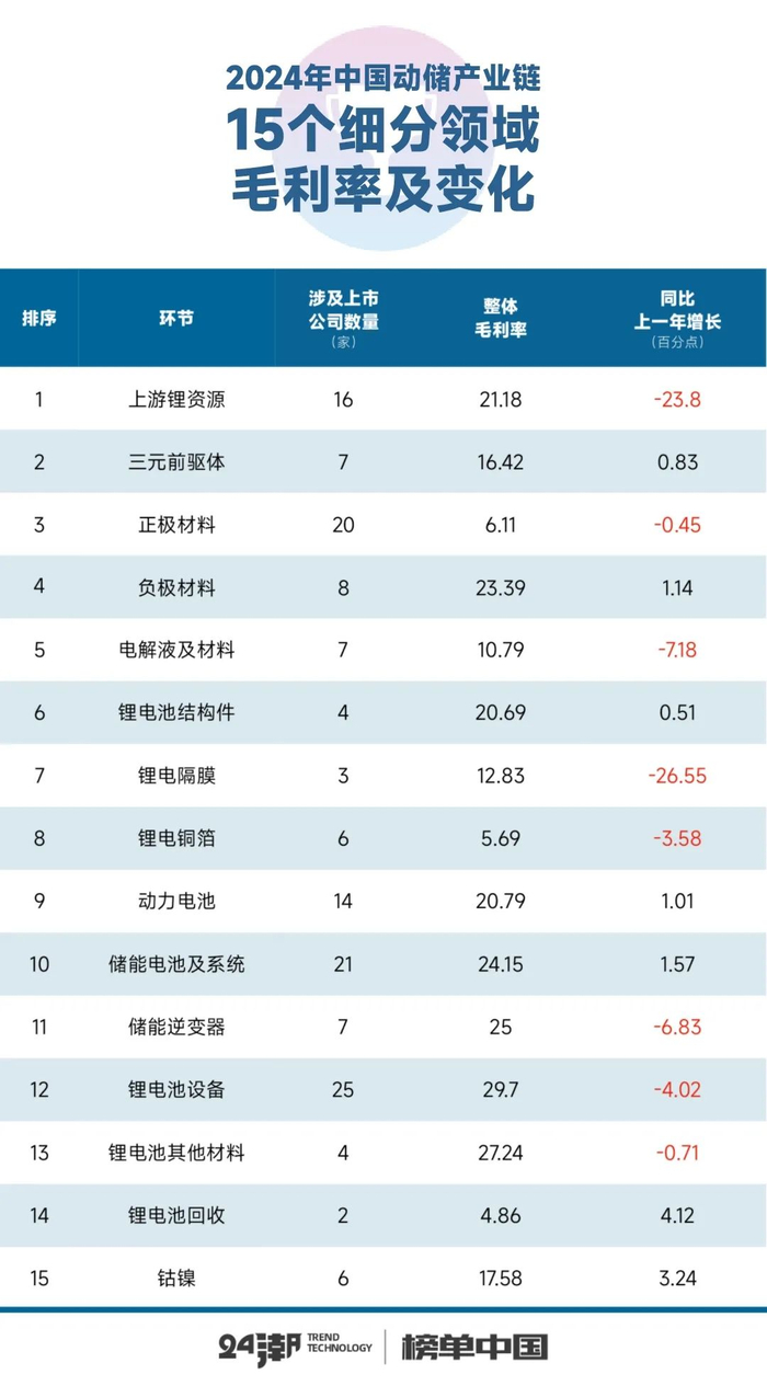 历史性大退潮下,中国动储15个细分产业链谁最赚钱