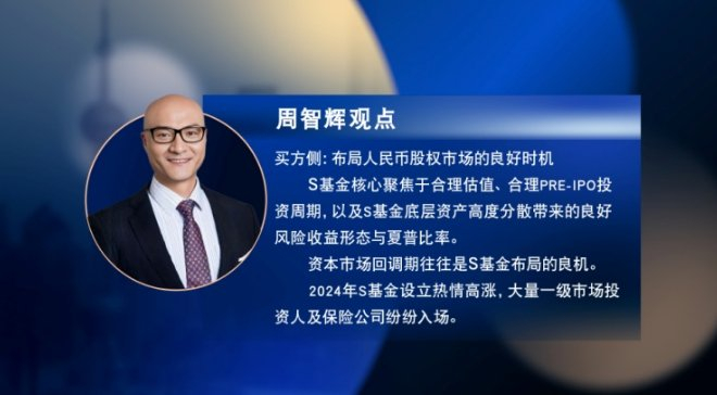 而对于买方侧,则是布局人民币股权市场的良好时机。S基金核心聚焦于合理估值、合理pre-IPO投资周期,以及S基金底层资产高度分散带来的良好风险收益形态与夏普比率。资本市场回调期往往是S基金布局的良机。2024年S基金设立热情高涨,大量一级市场投资人及保险公司纷纷入场。对于S基金收益来源,周智辉表示,S基金收益不仅源于折扣,更是管理人认知、网络、配置、赋能等综合能力的体现。