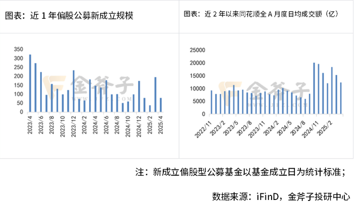 发行节奏收紧,市场情绪反复:4月份新成立偏股型公募基金79.49亿元,环比下行59.30%,新基发行节奏受市场悲观情绪冲击有所收紧。资金交易上iFinD全A月度日均成交金额本月为12358.82亿元,较前月下降19.09%,资金氛围在海外利空因素冲击下略显萎靡。