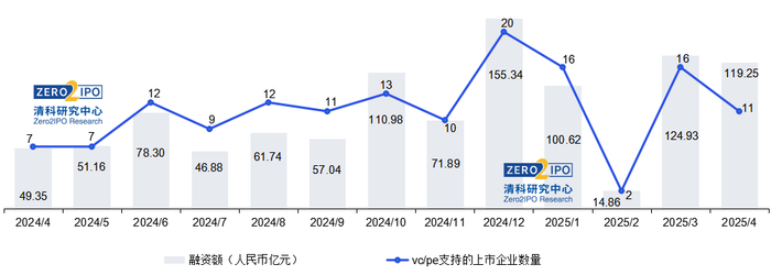 图2 2024年4月至2025年4月VC/PE支持的