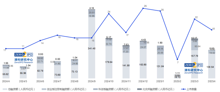 上市数量及融资总金额