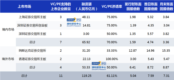 · 11家上市中企获VC/PE机构支持,渗透率为61.1%