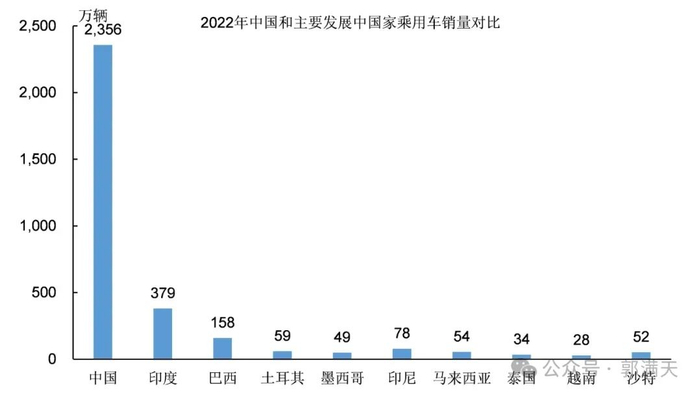 2022年中国的乘用车销量达到2356万辆,规模远远超过其他发展中国家。