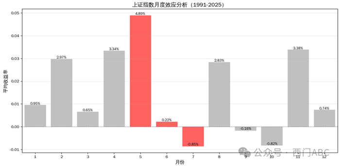 这里参考存续时间最久的上证指数,成立以来各月平均收益表现,如下: