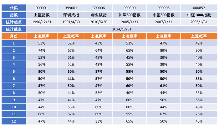 可以看出,各代表性指数5月上涨概率均不低于50%,同时也并没有出现明显的五六月下跌,七月反弹的特征。