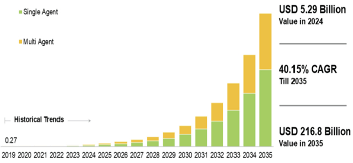 AI领域还有一个新趋势,从Copilot到Agent,Copilot就是副驾驶的意思,Agent就是代理。比如现在用豆包去旅游,让它制定一个旅游计划,它会给一个详细的列表,Agent就是把整个旅行方案包括订票,包括定制整个流程,解决动手的问题。Agent的三大核心能力是:规划、工具使用、记忆(长期、短期),后面我们寻找投资机会时,会多去寻找已经采用Agent的公司,看它在结果方面究竟提升了多少效能,节省了多少成本。预计未来十年,整个Agent市场复合增长率在40%以上。