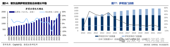 低价这招屡试不爽,创始人总结是因为萨莉亚给消费者带来了物超所值的商品,给社会创造了价值。但是仅仅价格低并不吸引人,对于日常高频的吃饭这件事,每个人都是专业的,而且每个价格带都有充分的竞争。萨莉亚能不断扩张在于提供的就餐体验远超客单价:试想在80年代的日本和2010年的中国,有一间装修洋气的馆子可以吃到万里之外的意大利菜,还有焗蜗牛、起泡酒等平价餐馆少见的产品,给人正宗不糊弄的感觉,当时的美国披萨必胜客定位都要人均近百元。2003财年至今,公司的收入和门店数都实现了平稳的增长。