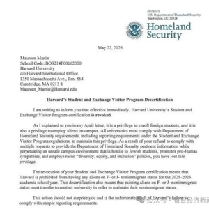 国际招生冻结 新生无法入学:2025至2026学年即将来临,数千名收到哈佛录取通知的国际生如今面临无法入境、签证作废的窘境。这对哈佛而言,不仅是生源流失、盈利受损,更是一场全球声誉的危机。