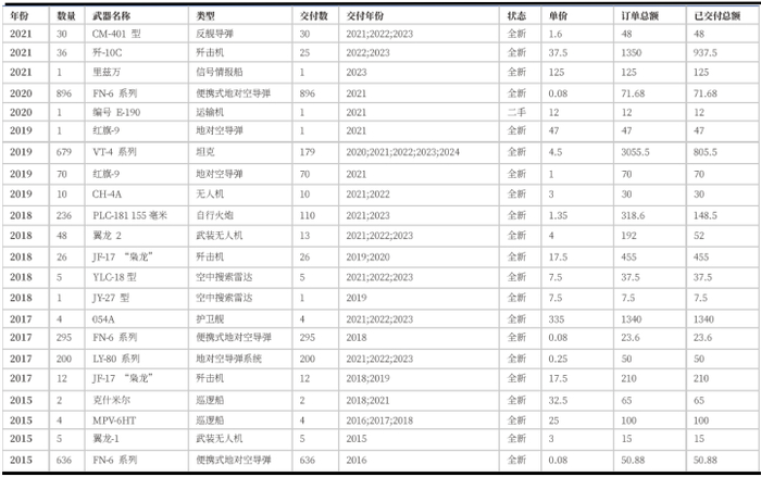 4:2015年以来,巴基斯坦成体系向中国“购买国防”情况