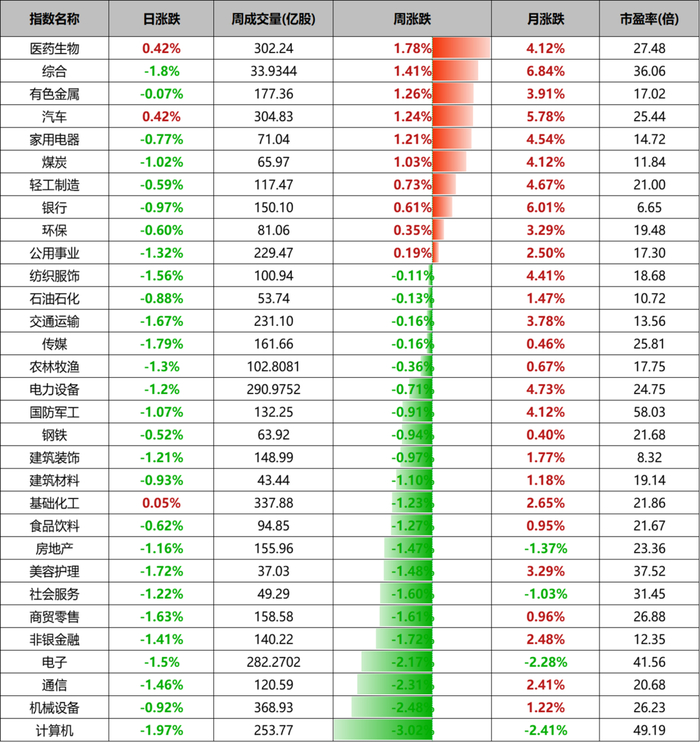 上周行业指数表现