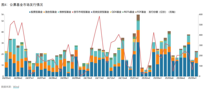 截止5月16日,合计发行23只,其中股票型基金发行12只,混合型基金发行5只,债券型基金发行5只,QDII型基金发行0只,FOF型基金发行1只,总发行份额240.04亿份。
