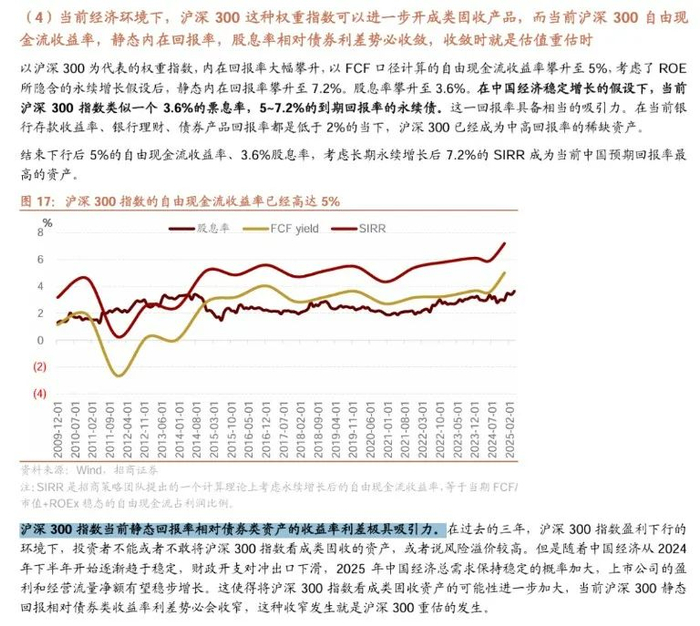同样,变化的是无风险利率的重新定价1年期定存利率已经破1%,股票资产的相对吸引力终将体现,估值体系将随之重构。随着汇金等平准基金越来越成为沪深300的压舱石,沪深300指数的波动率肉眼可见的在下降,如果在中国经济稳定增长的假设下,基于招商证券的研究推断,当前沪深300指数类似一个3.6%的票息率,5~7.2%的到期回报率的永续债。相较于存款利率的不断下行,这个回报水平极具吸引力。