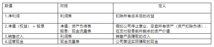 尽管,以上的分类足够的清晰具体,但是依然是文字性的定性描述,还是具体的不够彻底。我们可以关注财务报表上的4个数值,来实际量化一家公司的护城河:
