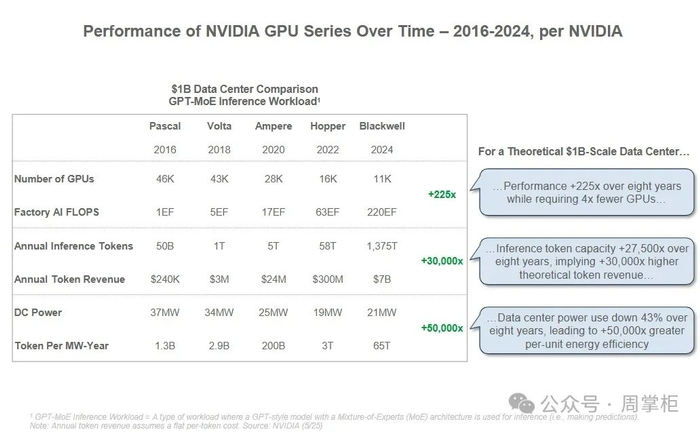 Nvidia凭借其GPU技术引领潮流,其H100 GPU性能在8年内提升了225倍,安装算力在6年内增长了100倍,2024年更是占据AI训练芯片市场超过90%的份额,展现了其无可争议的主导地位。