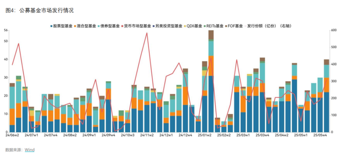 截止6月6日,合计发行40只,其中股票型基金发行22只,混合型基金发行8只,债券型基金发行7只,QDII型基金发行0只,FOF型基金发行3只,总发行份额310.13亿份。