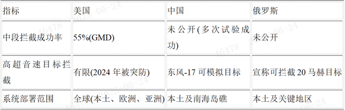 表:中美俄反导系统关键性能对比