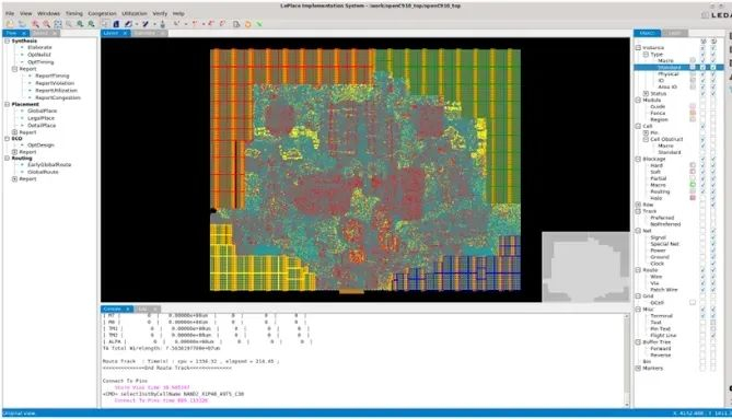 具体来说,是先基于网表,在给定大小的硅片面积内,对电路进行布局规划(Floor Plan)、布局(Place)和布线(Route)。