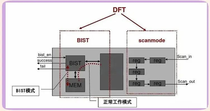 可测性设计(Design for Test,DFT),是为了方便后续对芯片进行测试,提前进行的自带测试电路设计。