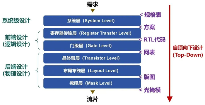 现在主流的芯片设计思路是自顶向下(Top-Down),也就是“先宏观,再微观”。