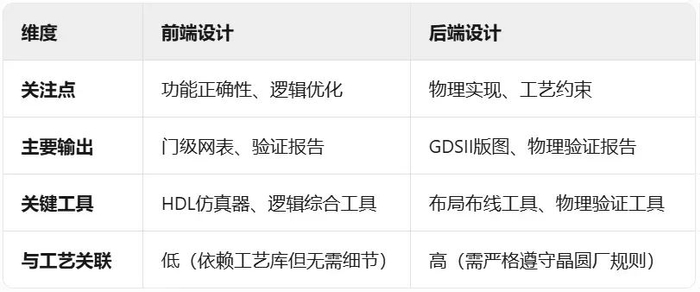 后端设计,则是物理设计,专注于物理实现,将前端的设计转化为实际的版图。这个阶段需要脚踏实地,考虑制造工艺约束、信号完整性、功耗管理等实际问题,解决物理实现的工艺挑战。