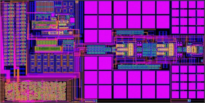 这就是版图,包括了平面几何形状、文本标签等与物理布局相关的信息,通常是一个图形数据库系统(graphic data system,GDSⅡ)文件。
