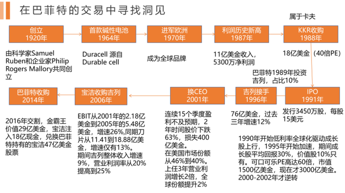 后来,我们又对金霸王的发展历程进行了梳理,发现这个衰退过程远没有想象中的快,不增长的业务对股东未必是坏事,如果可以有序收回现金,也能带来投资收益。巴菲特在点评金霸王时用了三个“很长”来诠释衰退的进度。