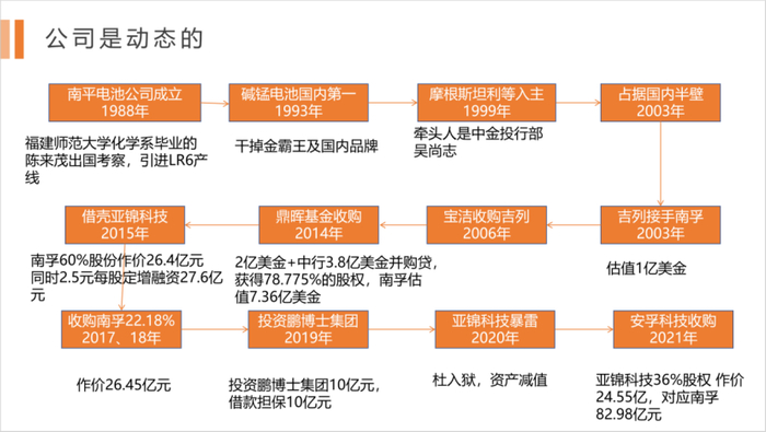 再看亚锦科技的发展历程:亚锦科技相当于南孚电池的控股公司,无其他业务。下图我们梳理了南孚电池的发展历程。南孚电池几乎垄断了国内5号和7号一次电池,盈利能力极强,并具有较强的竞争壁垒。但在亚锦科技层面,实际控制人聘请的职业经理人出了道德风险,投资鹏博士10亿元打水漂,又借款给房地产公司几个亿。导致大股东的股份质押面临平仓危机,危机中引入上市公司安孚科技。其实雷已被安孚科技排除,但市场仍然担心尚未释放完全。