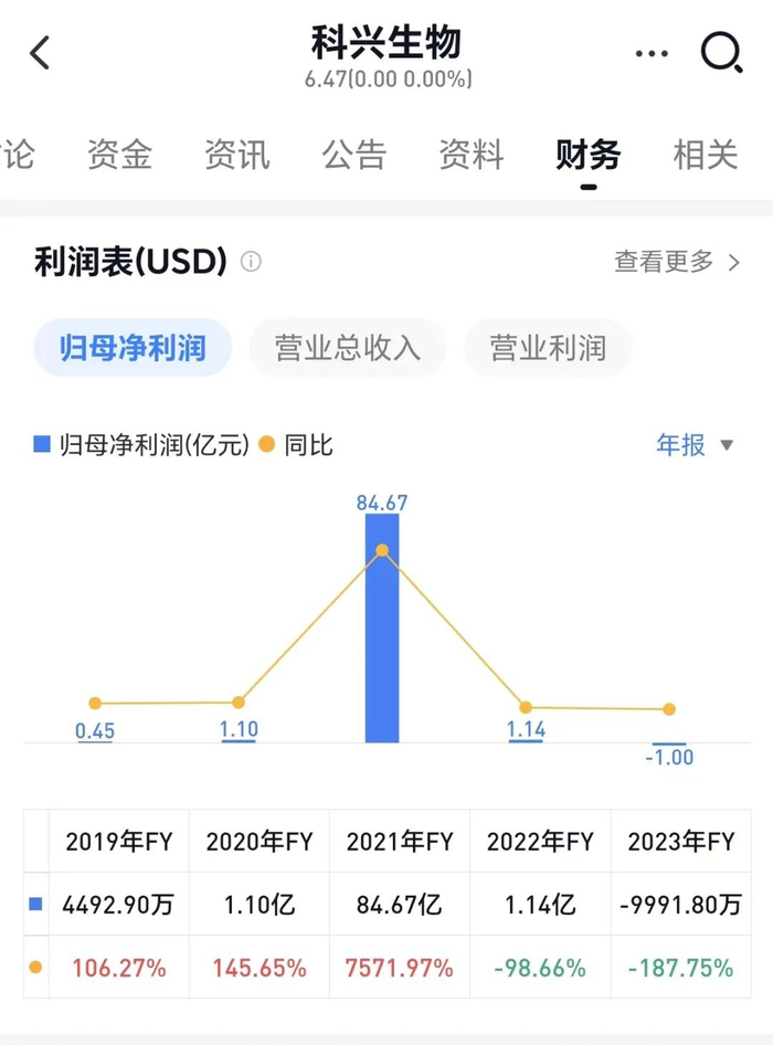 退出抗疫舞台后,新冠带来的浪潮也落下帷幕。2022年科兴生物全年销售额为15亿美元,同比大降92%;净利润为1.14亿美元,同比大降99%。2023年归母净利润亏损9991万美元,同比下降187%。